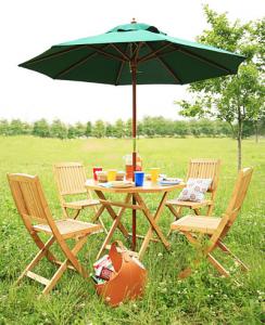 ・外でBBQや食事をするのにぴったり!5点セットと6点セットから選べます!・お庭のグリーンとよく合う、木製ならではのナチュラルな表情がリラックス感を高めます。・全て折りたたみ式でコンパクトに収納可能。持ち運びにも便利です。【サイズ】テーブル:幅92×奥行き92×高さ72cmチェア:幅41×奥行き60(座面奥行き37)×高さ86(座面高さ44)cmパラソル:直径210×高さ224cm(支柱直径:3.8cm)【材質】テーブル:天然木、強化ガラスチェア:天然木パラソル:ポリエステル(パラソル部分)、天然木(支柱部分)【生産国】中国【天板耐荷重】約15kg【商品重量/梱包重量】テーブル:約10kg/約